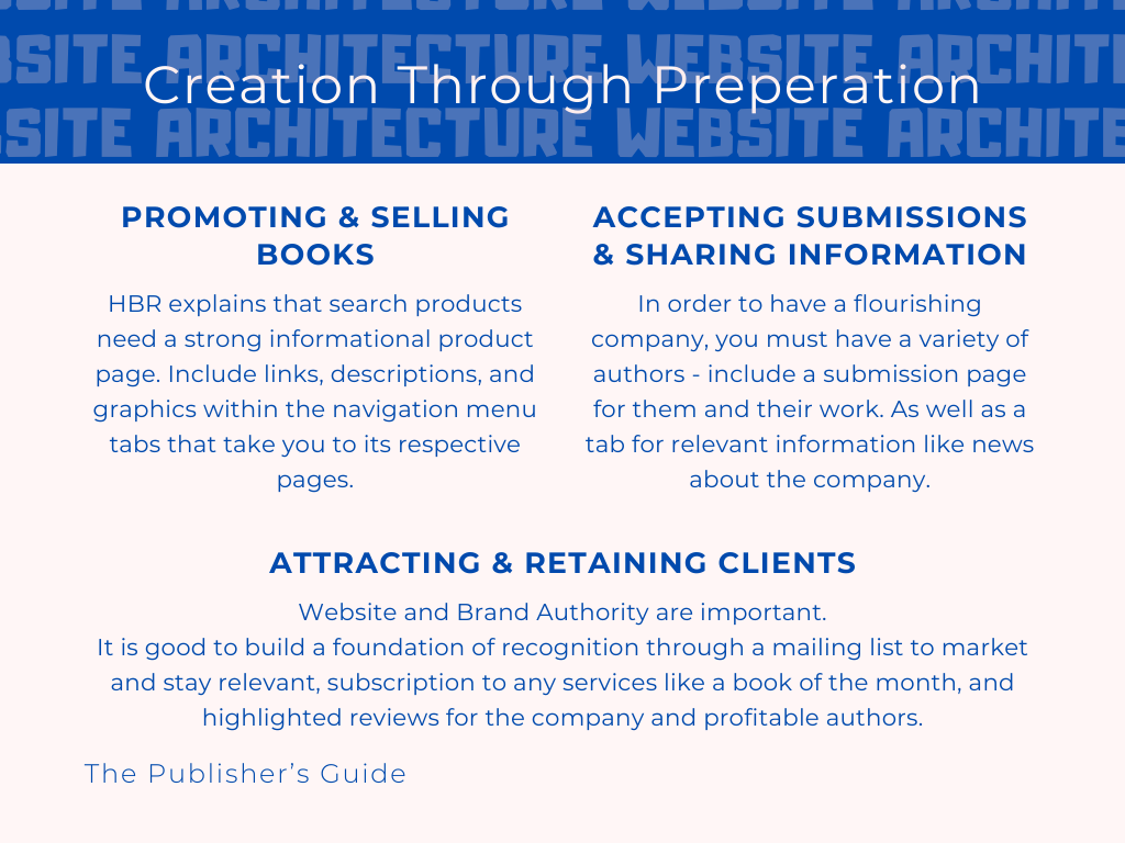 As the tried-and-true saying goes, ‘all good things take time.’ It is important to adapt this mindset for something so representative and essential like a website. Take the time to plan. A website is how an audience will interact with you, your company, or your clients. In literature, even though it is not advised, people still judge books by their covers. A website, like a book is what an audience will see and cast judgement towards. A site cultivates a writer or publishers’ brand and marketability.